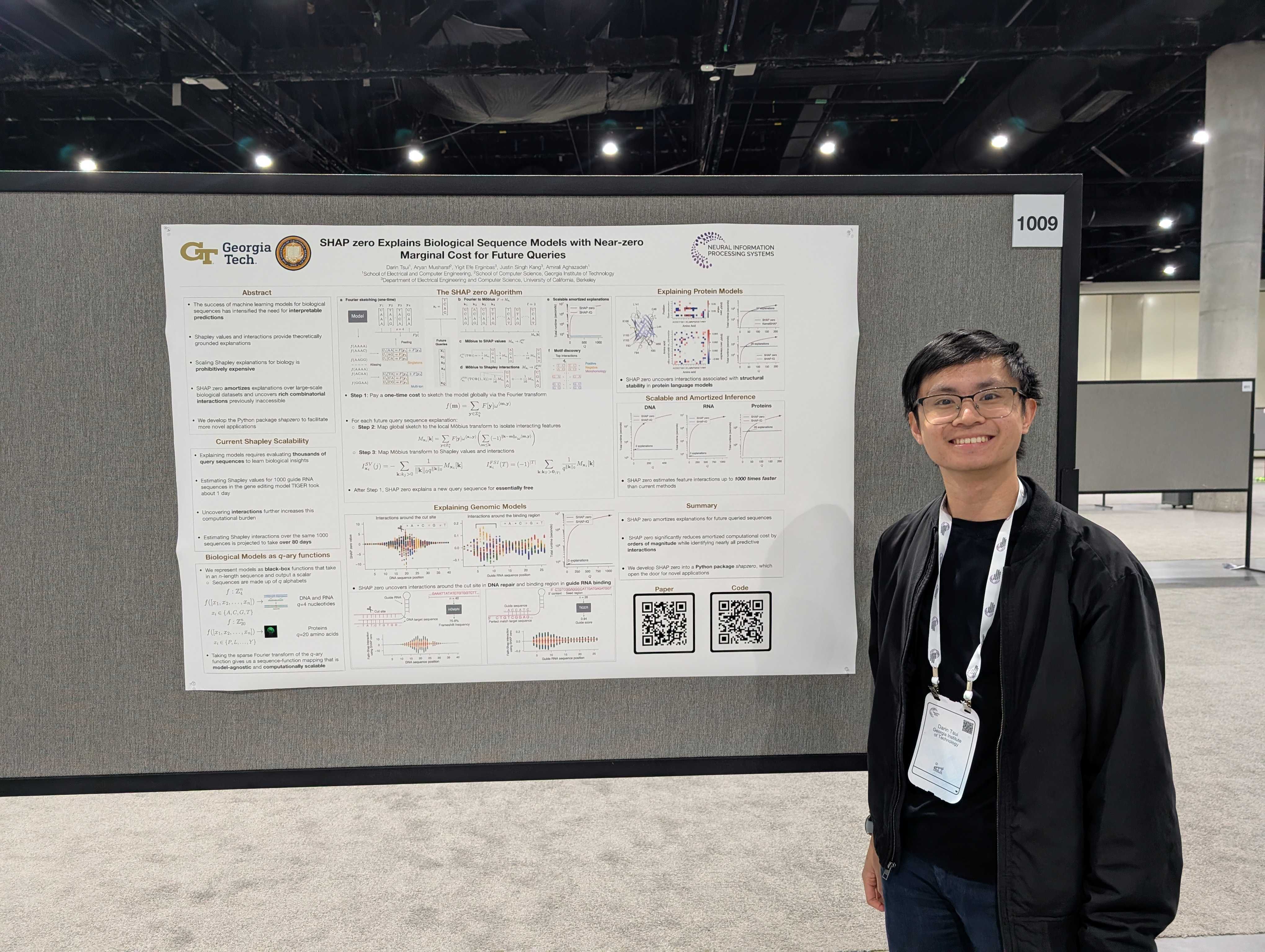 I had the incredible opportunity to present two main track papers (including one spotlight poster!) and one workshop paper at NeurIPS 2025 in San Diego! The research I presented there spans areas of protein engineering and design, explainability, and generative AI. Below are some pictures of me with my wonderful labmates, as well as some beautiful San Diego views!